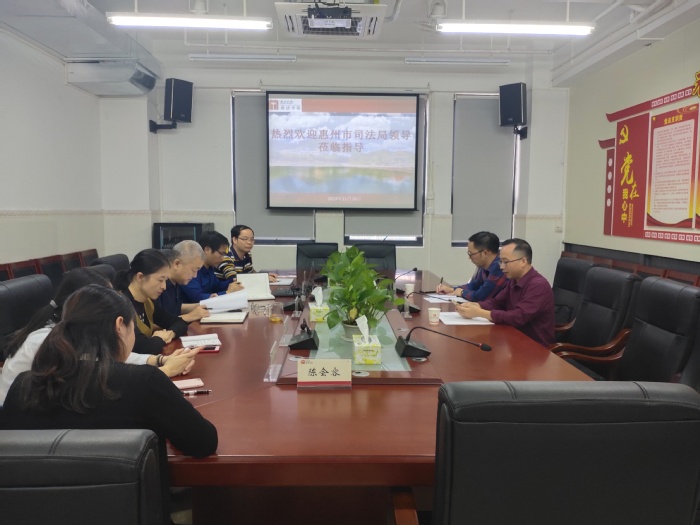 本网讯 11月18日下午,惠州市司法局法律服务管理科科长梁建军、干警培训中心教务科科长卢顺丁一行到政法学院指导、商议实习事宜。交流座谈会在教学实验大楼1608会议室举行。政法学院党总支书记、院长蒋炜,副院长郭平兴,法学系主任、教师代表以及辅导员等参加会议。
