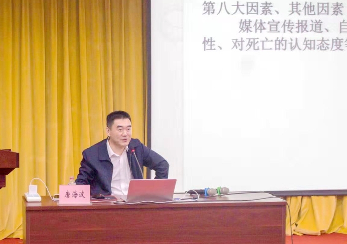 讲座中,唐海波研究员结合自身多年从业经验,从自杀的概念、相关因素及自杀的应激-素质模型等方面,对大学生自杀行为的原因和心理特征进行了系统、专业的分析和解读,强调在自杀识别模型中一定要关注自杀者的素质因素(也就是认知方式、遗传素质等),认为应激因素和素质因素共同作用才是导致个体发生自杀或攻击行为的根本原因。互动环节中,与会师生分别就工作中遇到的困惑与问题与唐海波研究员进行了深入的讨论与交流。