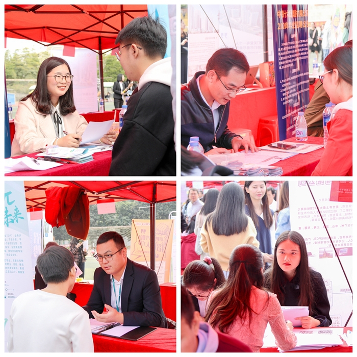 本网讯 11月30日上午,我校2020届毕业生供需见面会在田径场举行。本次供需见面会特设“校友专区”,来自全省各地的375家企业慕名而来、入校选贤。各二级学院党总支书记、副书记、辅导员及2020届毕业生等参加了供需见面会。