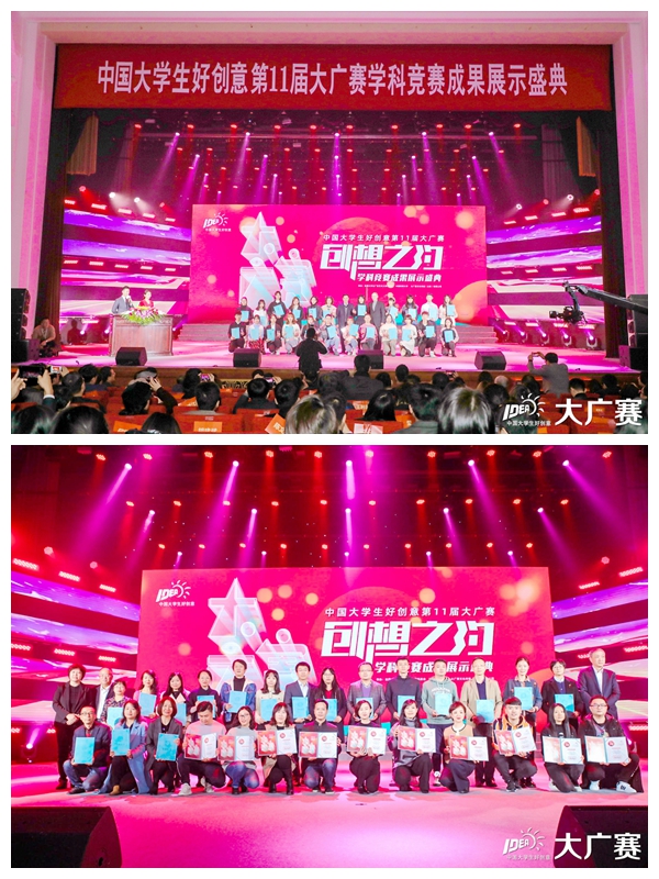 据悉,第11届“大广赛”参与高校达1504所,全国设有29个赛区(覆盖全国31个省、自治区、直辖市),参赛大学生超101万人次。2019年网上提交作品404662组、90余万件,作品类型丰富,涵盖了广告的各种表现形式。在本届“大广赛”全国赛中,惠州学院荣获1项一等奖、2项三等奖、3项优秀奖、1名优秀指导老师的好成绩。而在本届“大广赛”广东赛区中,我校美术与设计学院荣获一等奖5项、二等奖9项、三等奖17项,共计31项,并获优秀组织奖。