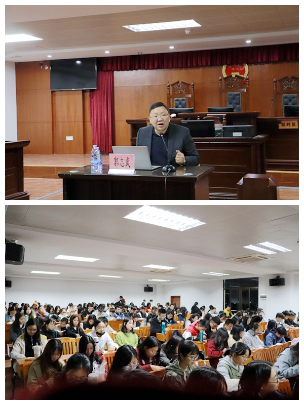 2019年12月3日晚,由学校主办、政法学院承办的宪法主题教育普法讲座在田家炳教学大楼举行。广东八维律师事务所郭志武主任应邀给同学们作了专题讲座。