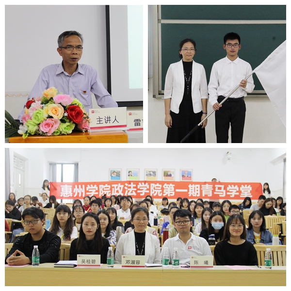 本网讯 11月27日下午,政法学院第一期青马学堂开班典礼暨青马学堂第一讲在教学实验大楼206课室举行。马克思主义学院党总支书记雷吉来,政法学院党总支副书记邓淑容,政法学院团总支书记、辅导员参加活动。活动由辅导员陈曦主持。