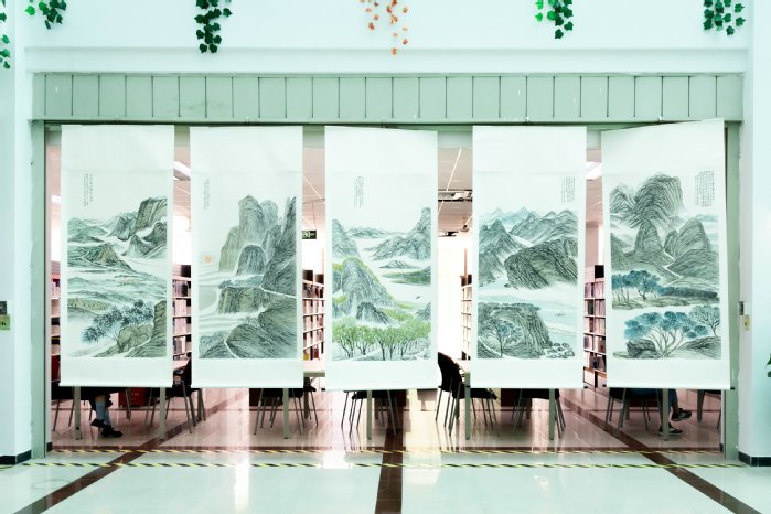 仪式结束后,师生们一同参观了书画展。据悉,梁力文先生此次共捐赠给我校图书馆17幅书画作品,其中包括东坡诗意画《卷地风来忽吹散,望湖楼下水如天》、诗意画《罗浮仙境图》、隶书联句《读书千载经纶志,松柏四时潇洒心》等佳作。