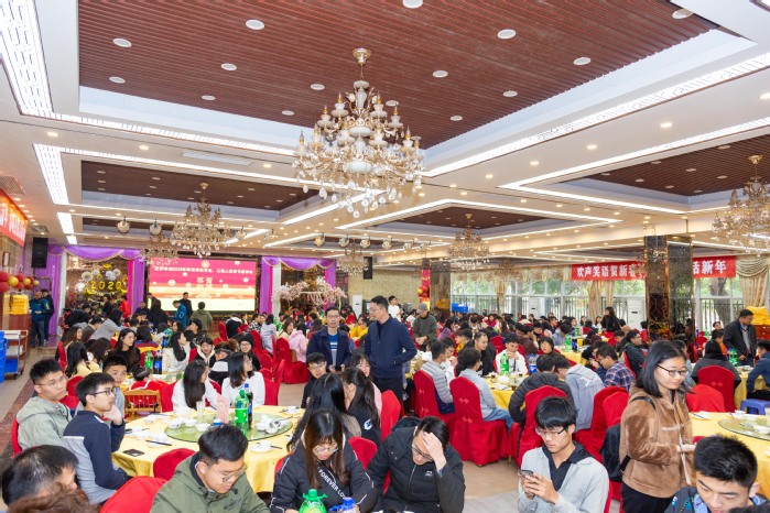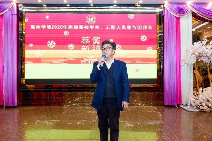 本网讯 2020年1月19日上午,我校2020年寒假留校学生和工勤人员新春团拜会在东森菜馆举行。校党委副书记、纪委书记罗川山,校办、后勤基建处、保卫处、学生处、团委等职能部门负责人,各二级学院党总支书记、副书记、辅导员代表,2020年寒假留校学生和工勤人员欢聚一堂,一起喜迎新春。
