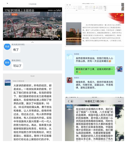 学院各班级积极筹备,有序开展主题班会。各班班主任组织本班同学,依托微信、QQ、钉钉等平台,召开了形式多样的线上主题班会。目前全院共有27个班级开展了主题班会。