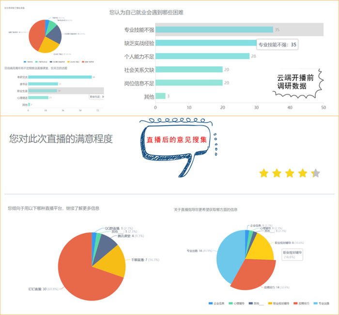 阆苑青听工作室有关负责老师表示,为了更好地回应同学们的需求,学院持续推进“青年说”系列活动,阆苑青听工作室师生团队在考研分享会开播前和直播后分别进行了需求问卷调查,根据学生听众的反馈意见,了解参与同学对直播课的课程提醒、可以重播重听等功能的点赞体验,下一步将针对直播互动直接性、良好体验性、实效性进行调整,力争更好地推出下一期活动。