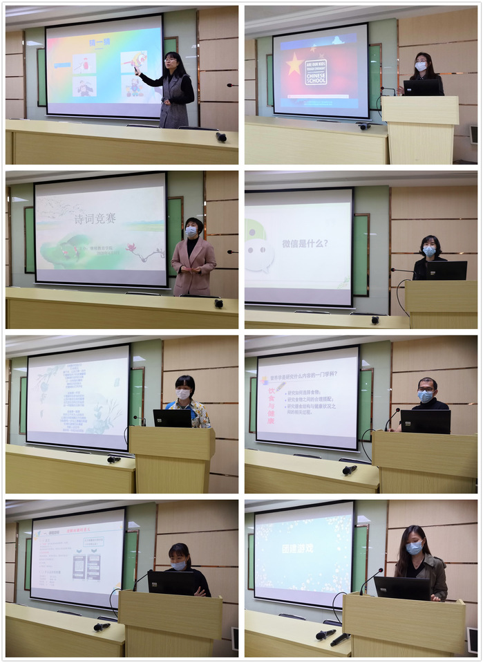 培训团队各成员进行了技能展示,展示课程丰富,形式多样,有微课堂、飞花令、诗词竞赛、才艺展示、班级活动、团建游戏等。