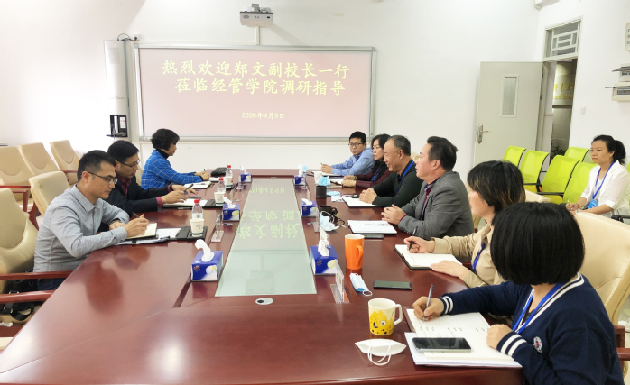 本网讯 4月9日下午,副校长郑文就近期网络教学及师资队伍建设等情况到经济管理学院开展调研,教务处处长张敏、人事处副处长曾蔚阳陪同,经济管理学院班子全体成员参加了调研座谈会。
