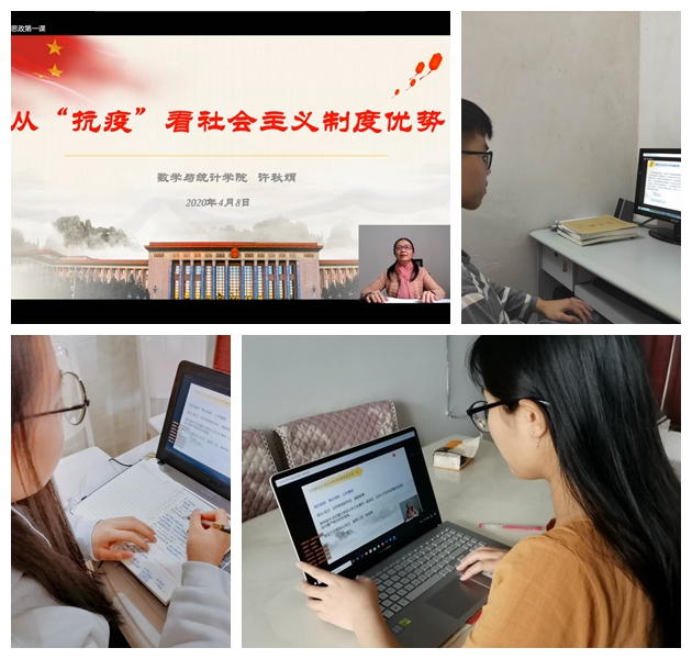 本网讯 4月8日下午,数学与统计学院党总支书记许秋娟通过线上直播的形式为2019级全体学生讲授了“从‘抗疫’看社会主义制度优势”为主题的思政第一课。