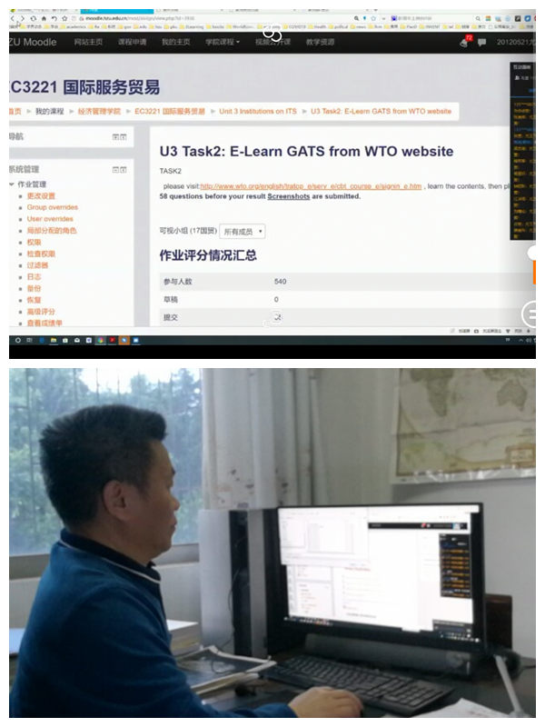 课上,尤玉平教授通过Moodle、超星学习通、钉钉直播三个平台,集丰富的课程资源、较好的计算功能及互动效果与一体进行双语教学,主要从三个维度、四种服务提供方式对国际服务贸易手册中的承诺表进行解读,课程充分运用WTO website,培训模块Gats资源及大量的案例开展教学,扩充了学生的知识视野。