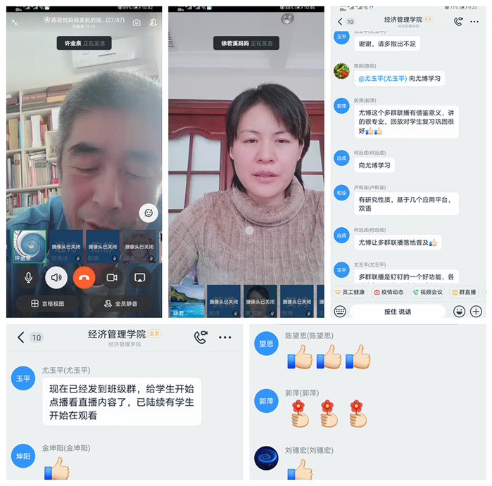 学院胡玉洲副教授,桑红莉、樊聘、黄莆、李蓉及吴长兰等老师也分享了听课感想,表示此次听课对自我课程教学资源的储备、网络技术平台的优势切换方面获得了很多启示,会结合课程特点努力实践运用,提升学生的学习效果。