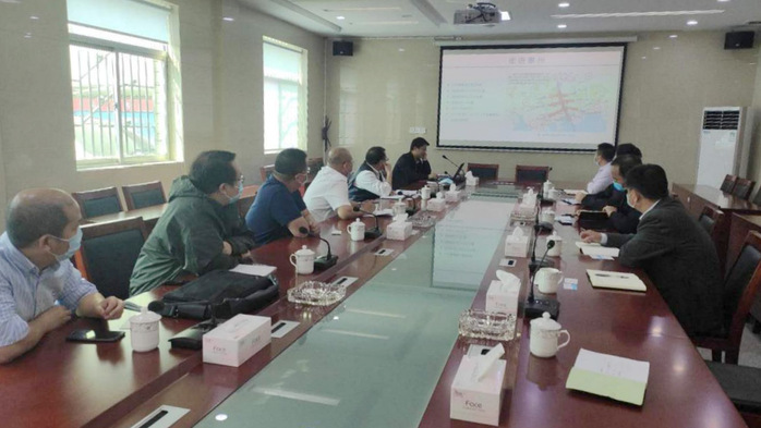交流中,惠州市能源与重点项目局陈本聪科长对惠东新材料产业园作详细介绍。