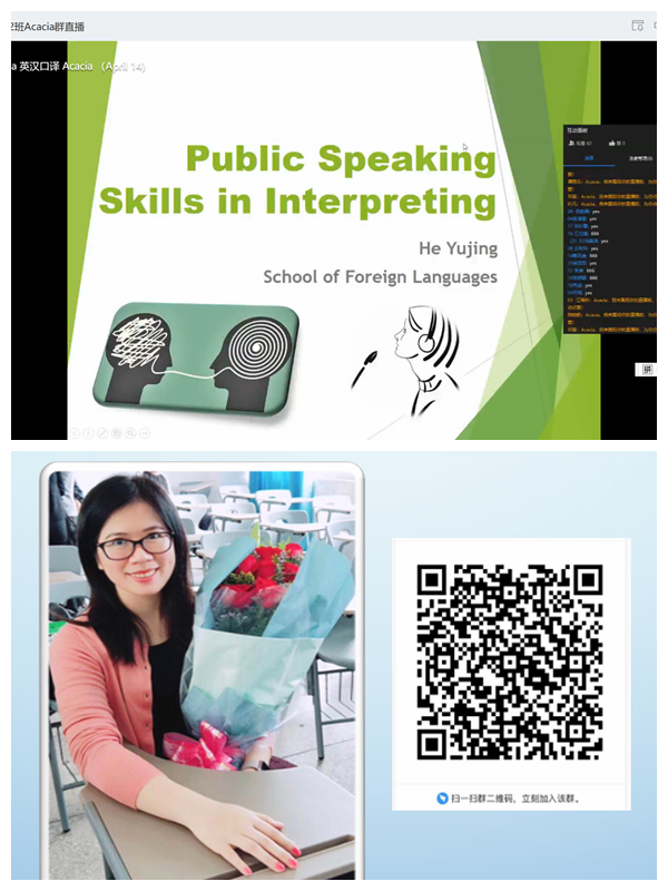 本网讯 为进一步提升网络教学质量,加强网络教学经验交流,4月14日上午,外国语学院举行了面向全校的网络教学示范公开课,公开课程为《英汉口译》课程,由英语专业何宇靖老师主讲。
