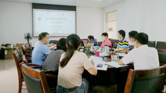 本网讯 为进一步做好学生返校工作,5月12日,生命科学学院于化工楼409会议室召开2020年春季学期学生返校工作布置会。学院党政领导、办公室主任、实验室主任、毕业班班主任、辅导员、教务员参加了本次会议,会议由学院党总支书记梁红梅主持。