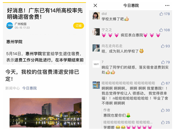 我校明确将退减2020年春季学期住宿费,学生反响热烈