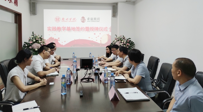 戴学军、林红对公司主动联系学校、积极筹建实践教学基地表示感谢。戴学军简要介绍了地理与旅游学院的基本情况,并着重介绍了地理信息科学专业的人才培养、科学研究、实验设备与师资力量等,表示希望在人才培养、服务地方、平台建设、实现“产学研”一体化等方面与卓益土地房地产资产评估规划有限公司开展更深层次的合作。