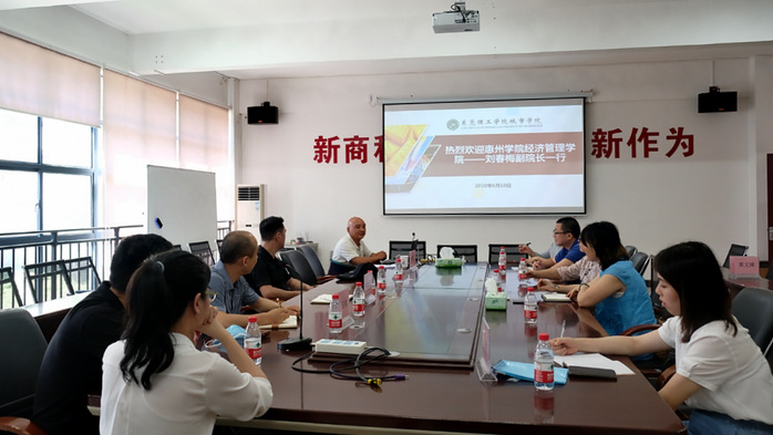 本网讯 6月11日下午,经济管理学院副院长刘春梅带队学院教师一行5人赴东莞理工学院城市学院商学院交流学习。商学院科研和实践实训副院长、教学副院长郑阿泰、会计教研室主任耿玉成等教师参加交流会。