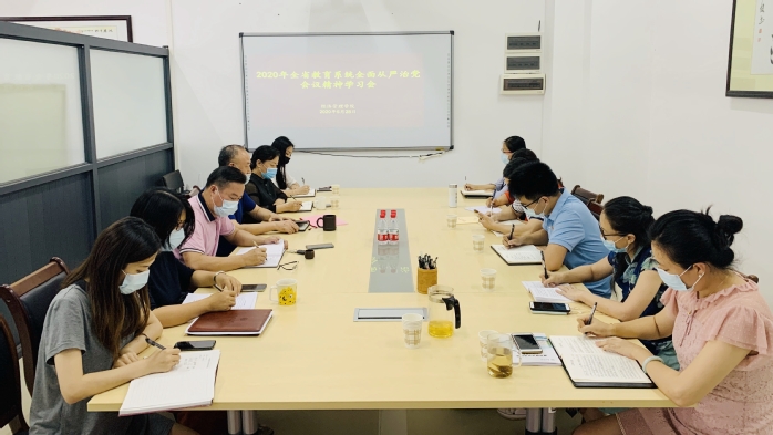 本网讯 近日,经济管理学院在学院会议室召开2020年全省教育系统全面从严治党会议精神学习会,院长王兴邦、党总支书记郑良才、党总支副书记祝琳、各党支部书记参加了会议。