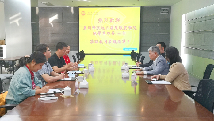 宣讲分享会前,学院领导班子成员向全国政协委员、旭日集团副董事长兼总经理、旭日广东服装学院董事会董事长杨勋先生汇报了学院近期工作情况。