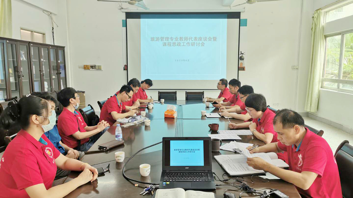 旅游管理教学系主任刘恩波老师在座谈会上提到,专业教师与学生工作队伍紧密协同,应紧紧抓住粤港澳大湾区建设机遇,彰显旅游管理专业服务地方功能。胡杨博士提出,随着中国旅游业的发展以及文化和旅游部门的组建,文旅深度融合是大势所趋,充分挖掘及凸显旅游资源中的文化、历史元素,是推进旅游管理专业课程思政的突破口。李存副教授则建议打开思路,将旅游管理专业教育与互联网旅游直播、直播带货结合。王丰年副院长围绕新生入学专业教育,提出通过内涵式建设与外延式发展,提升专业的吸引力和创新性,提升学生的专业认同感。金艳春、王萌等参会的青年博士也就课程思政和新生入学专业教育发表了意见和建议。
