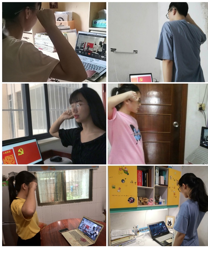 本网讯 7月1日下午,在建党99周年纪念日这个特殊的日子里,数学与统计学院学生党支部通过钉钉视频会议举行预备党员入党宣誓仪式,学院党总支书记许秋娟、副书记陈海容、学生支部书记崔阳阳,辅导员刘志威、屈杰,以及学生党支部全体党员参加了宣誓仪式。宣誓仪式由崔阳阳主持。