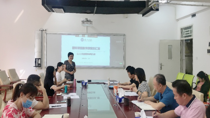 本网讯 6月19日下午,经济管理学院第二期教学能力提升分享交流会开展。学院领导班子、教指委及青年教师参加现场会议,学院其他专任教师通过钉钉直播平台线上参与交流。会议由副院长刘春梅主持。