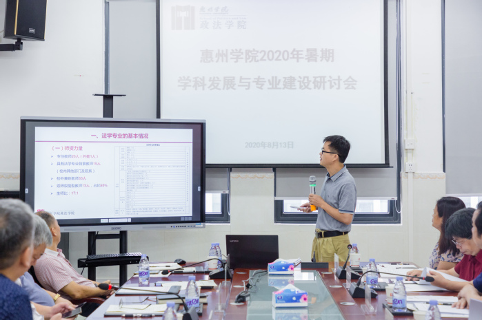 本网讯 为不断提高法学和社会工作专业建设,推进联合培养硕士点建设,建立高校专业定期联系制度,学校于8月13日在政法学院会议室、行政楼202会议室召开了两场2020年暑期学科发展与专业建设研讨会。南开大学、中山大学、华东理工大学、华南农业大学、华南师范大学、深圳大学、广东外语外贸大学、广东工业大学、东莞理工学院有关专家,广东省民政厅、惠州市人大、惠州市民政局、惠州市社协、东莞市社协有关领导,我校副校长刘国栋,科研处、教务处、政法学院负责人及法学、社会工作专业有关教师参加了会议。会议由政法学院院长蒋炜主持。