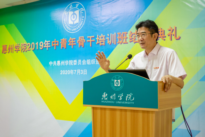 本网讯 7月3日下午,我校首期中青年骨干培训班在继续教育学院一楼培训室举行了简洁庄重的结业仪式。校党委书记、校长彭永宏出席结业仪式并讲话,校党委副书记、纪委书记、省监委驻惠州学院监察专员罗川山主持仪式,党委组织部全体成员、2019年中青年骨干培训班全体学员参加结业仪式。