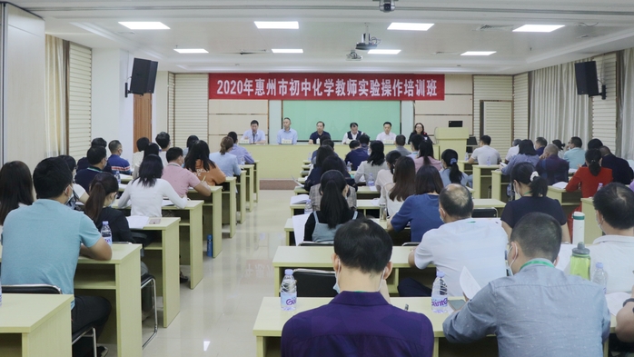 本网讯 10月26日,2020年惠州市初中化学教师实验操作培训班在继续教育学院二楼会议室开班。化学与材料工程学院负责人、继续教育学院相关负责人以及培训班60名学员参加了开班仪式。