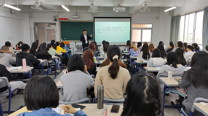 李良永校长以在场的师范生为九年级模拟学生,上了一堂生动精彩的语文示范课。课上,李校长特别强调要“呈现错误”才能马上改正,要重视识记汉字之规律,并针对主题“跟着思想者思考”讲了三个纬度,分别是“思想者的思想”、“思想者的思维”、“思辩者的思考”。 在提到“思想者的思想”上,李校长引导学生浏览并立刻回顾培根的生平和思想,强调语文人的强大功能,要迅速抓住核心信息,作为未来的教师,应该有意识去训练这方面的能力并以此去要求学生。在“思想者的思维”方面,李校长引导同学们分五组完成五个课堂任务,五个任务分别是论说思维的路径、效度、精度、广度、深度,并随文分析归纳了多种论证方法。对于“思辩者的思考”,李校长启发同学们要多进行课下思考。他总结了《谈读书》的主要内容和论证方法。希望同学向培根学习,学会积极探索,多提笔,写出超越时代的作品。