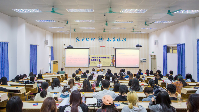 讲座中,祁春英通过丰富多彩的民族服饰图片介绍中国少数民族服饰图案及其审美特征,阐释蕴藏其中的深厚民族文化内涵,通过设计作品和典型案例向我们展示中国少数民族服饰的昨天、今天和明天,并强调服饰非物质文化遗产保护、传承和创新的重要历史意义,赢得了在场师生的热烈掌声。交流环节中,在场师生与祁春英研究员进行了互动答疑,师生均表示受益良多。