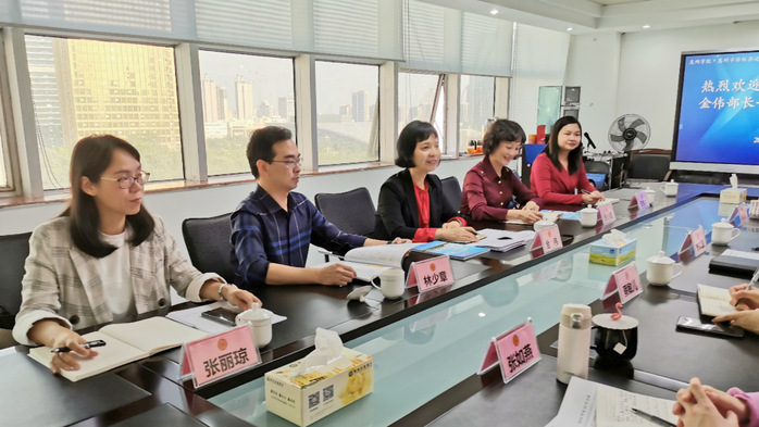 座谈会上,金伟说明了到访目的,重点介绍了学校成立归国华侨联合会的筹备情况,并就召开成立大会的相关工作细节请求市侨联指导和帮助。