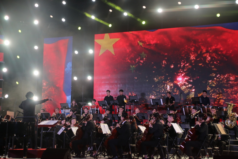 晚会伊始,一曲交响乐《北京喜讯到边寨》奏响,热闹欢快的曲风很快调动了现场气氛。耳熟能详的交响乐《红旗颂》,让在场观众听得如痴如醉。王一晴老师演唱歌曲《不忘初心》,歌颂祖国山河美、中国道路美,不忘初心,继续前行。王一晴、贾生胜演唱歌曲《天耀中华》,高超的美声技巧演绎出气势恢宏的歌曲意境,得到台下观众的阵阵喝彩。晚会最后,惠州交响乐团及音乐学院教师共同演奏交响乐《黄河钢琴协奏曲》组曲,将观众带入一个又一个气势恢宏的意境,“描绘出一幅幅优美的黄河画卷。”