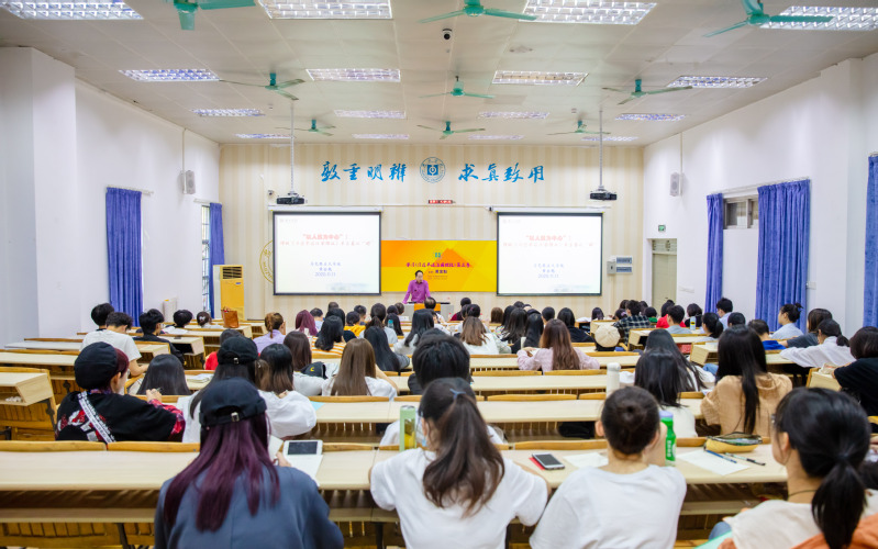 本网讯 11月11日下午,在服装楼101教室开展《习近平谈治国理政》第三卷专题学习。马克思主义学院黄金魁教授应邀为学院师生作题为“理解《习近平谈治国理政》第三卷之‘眼’”的专题讲座。旭日广东服装学院特聘教授狄剑锋、党总支书记曾裕林、党支部副书记颜美美等老师及学院全体学生党员、2020级入党申请人等近200人参加了学习会。