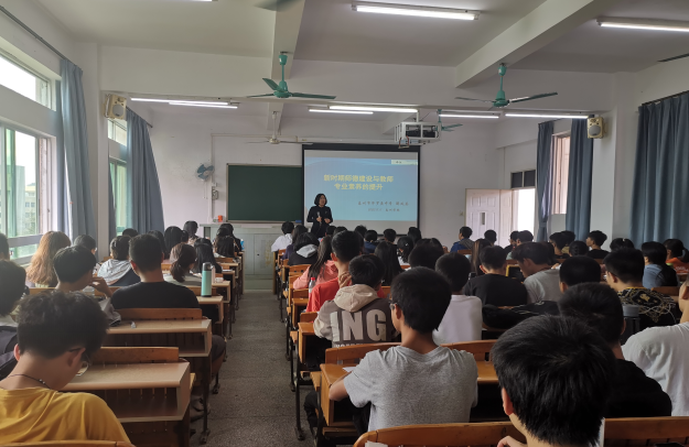 解凤英老师向同学们解释了教师和老师的区别,从而引出了成为一名合格教师所需要具备的要求,引导同学们树立教育初心。又从习近平总书记对新时期老师的寄语中,介绍了要成为一个好老师的四点基本要求,即要有道德情操,有理想信念,有扎实学识,有仁爱之心。鼓励同学们在成为一个老师以后要多写教学反思,改进教学进而形成论文。讲座的最后,解老师告诉同学们,要成为一名好老师不仅要有技术还要有温度,要时刻谨记自己的教育初心。