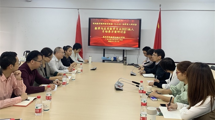 本网讯 11月17日,数学与统计学院特邀广东省曾护荣名师工作室团队来院开展“校地协同,研学研教”的交流研讨会。本次交流研讨会由数学与统计学院和广东省曾护荣名师工作室联合举办。学院副院长杨水平、数学系主任刘玉彬博士、数学系教师代表以及2018级数学卓越班学员参加了此次交流研讨会。