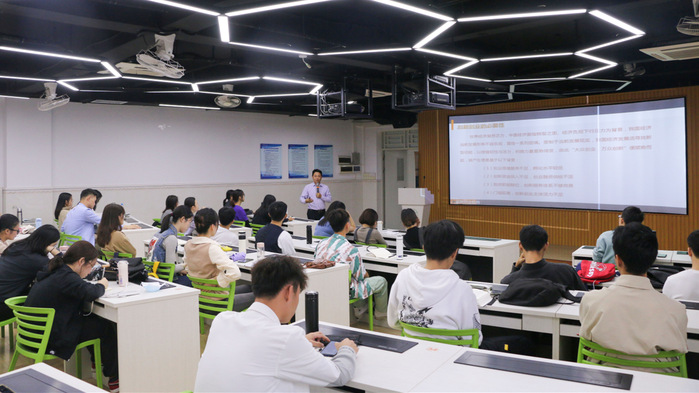 本网讯 11月14日下午,经济管理学院第四期双创管理实验班第二讲围绕创新创业趋势与政策导论主题在教学实验大楼501室开讲,惠州工程职业学院校企合作与学生就业处副处长、SYB创业培训师、国家物流师、营销师朱添锦副教授为“双创班”学员进行课程讲授。