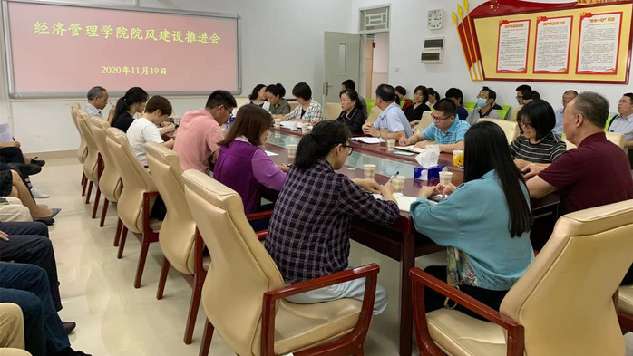 本网讯 11月19日下午,经济管理学院在教学实验大楼1508会议室召开学院院风建设推进会。学院领导班子成员和全体教职员工参加了会议,会议由学院副院长刘春梅主持。