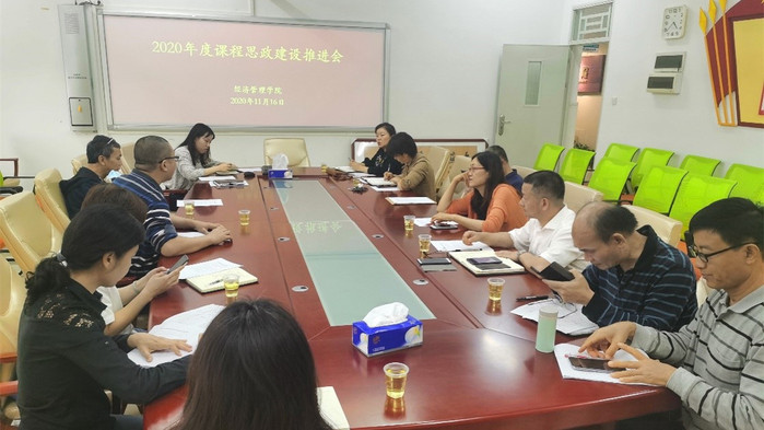 本网讯 11月16日下午,经济管理学院在教学实验大楼1508室召开2020年度课程思政建设推进会,财务管理、市场营销、国际贸易、物流管理和审计学5个专业系主任、13项课程思政项目立项的主持人以及教务员老师等参加,会议由教学副院长刘春梅主持。