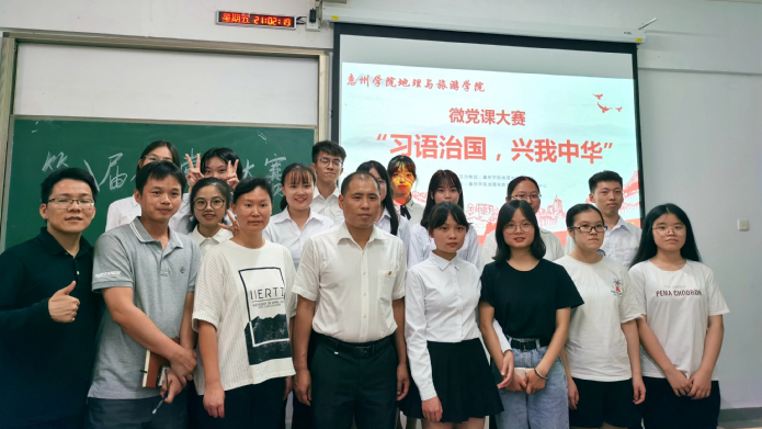 本网讯 11月20日,为深入学习《习近平谈治国理政》第三卷,地理与旅游学院举办第八届“习语治国、兴我中华”微党课大赛,地理与旅游学院党总支副书记罗辉武,教工党员叶志平、金艳春,学生党支部书记邓木彬担任评委,学生党员、入党积极分子、入党申请人参加了活动。