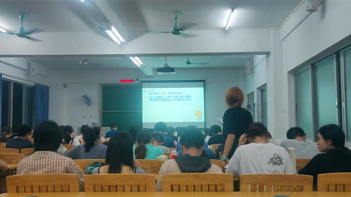 翁煜授课过程生动有趣,在第一个板块“把话说到心窝里”他重点讲述了如何把情感与言语相结合,结合主题“有效沟通”,坚持“沟通从心开始”的原则,深入浅出讲解说话这一门艺术,将说话的技巧总结为坏话好说、长话短说、虚话实说等四字箴言,让同学们初步掌握了言语与情感的联系。而后翁煜通过“职场沟通的良言忠告”课题探究进一步讲述“弦外之音法”、“复述反馈法”和“情感反馈法”让同学们进行思考并尝试运用所学技巧去思考如何听清弄懂谈话对方的真实想法、如何简单有效地用复述确认任务并给予对方反馈和如何通过情感交流在沟通中搭建“我”自己与对方的情感桥梁。