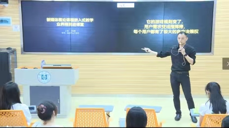 本网讯 11月20日下午,文学与传媒学院邀请业界精英——搜狐新闻惠州总经理、总编辑古优裕在田家炳大楼504教室,为文学与传媒学院19级广播电视学的同学开展了《新媒体概论》的嵌入式课程教学活动。