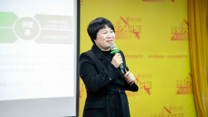 本网讯 为培养同学们的创新创业意识,12月2日,由创新创业学院主办、旭日广东服装学院承办的创业大讲堂第17讲在图书馆学术报告厅举行。广州尚睿服饰有限公司总经理、撒尼创始人江小云应邀作《后疫情时代服装行业发展趋势》专题讲座。旭日广东服装学院师生代表共200余人聆听了讲座,讲座由旭日广东服装学院院长陈学军主持。