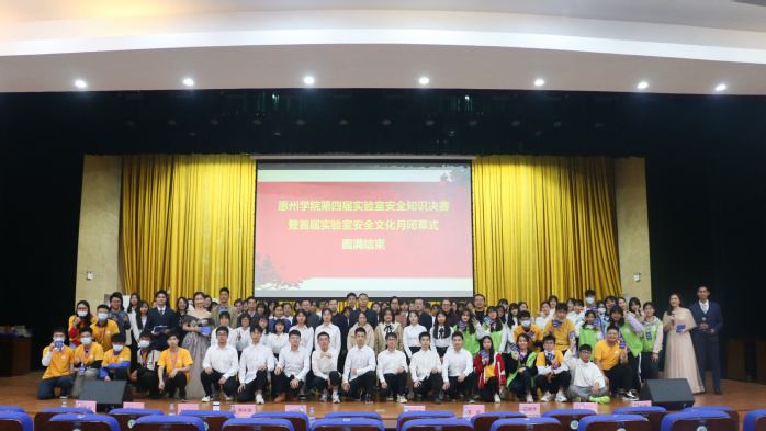 本网讯 12月6日晚,由教务处、资产设备管理处、保卫处、学生处、团委主办,化学与材料工程学院承办的惠州学院第四届实验室安全知识竞赛决赛在鹅城会议厅举行。教务处、保卫处、学生处有关负责人,生命科学学院、电子信息与电气工程学院、旭日广东服装学院有关领导及教师代表,化学与材料工程学院领导班子及部分教师代表以及学校各学院学生代表到场观看比赛。