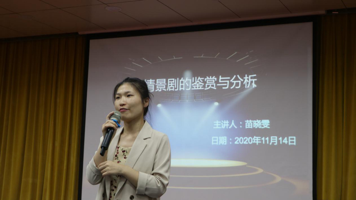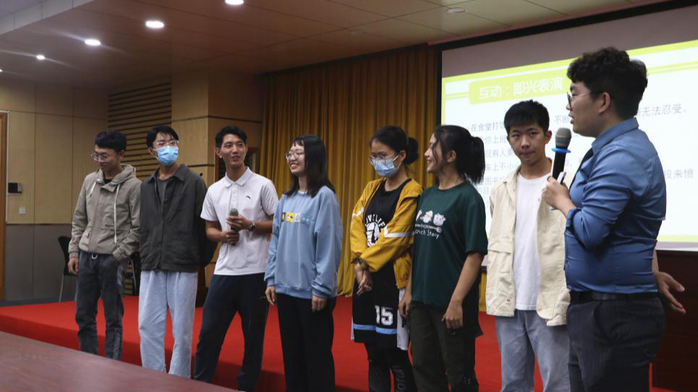 心理健康教育与咨询中心苗晓雯老师作《优秀心理情景剧的鉴赏与分析》专题讲座,以第二届全国高校心理情景剧比赛一等奖作品《蓝气球》开讲,让大家对该剧所采用的雕塑、束绳、旁白等心理剧技术以及道具的拟人化使用等具备感性认识。苗晓雯以《一盘伞沙》《第五层》为例,逐一分析讲解了相关剧目的优点与不足,让同学们更进一步了解如何在创作过程中借鉴“他山之石”。在互动环节中,参会同学还上台进行了“隐形心理的显性描述”模拟表演,让大家深入感受了心理情景剧艺术的力量,引发和启迪同学们对身边的心理现象进行思考和觉察,对提高校园心理情景剧的鉴赏水平具有显著意义。