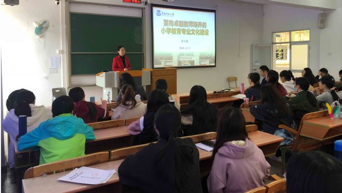 “以文化人,向文而化,不令而行”,曾文婕教授强调了文化的重要性,建设面向卓越教师培养的小学教育专业文化的重要性。曾教授从历史和发展前景介绍了小学教育专业的过去与未来,让我们深感其历史悠久和光明的前景,对本专业的发展充满希望。曾教授又从理想、投入、自主三个角度讲述了华南师范大学小学教育专业的学习文化。激励我们树立理想、投入进取,通过自主研修,自主设计个人学习活动,勇于、善于、勤于抓住机会,在行动中学习。