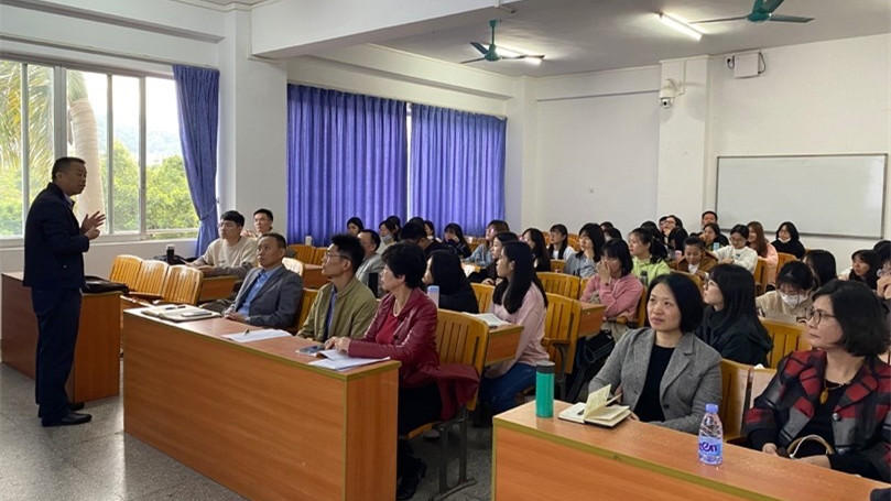 欧小军为在场师生作了题为“教师资格考试面试培训”的讲座,细致解读了教师资格面试流程及注意要点,从撰写教案、回答问题到试讲答辩,每个环节配有生动的面试案例分析。之后,欧小军结合自己的面试官经验,为同学们分析了如何正确面对教师资格考试,重点是在于做一名合格的教师,并且为同学们列出大致的教学内容,工作安排以及教师工作的具体要求,希望同学们能真正在实践中提升自己的技能。讲座的提问环节,同学们积极提问,收获满满的备试干货,汲取到了宝贵的教师资格考试面试经验。