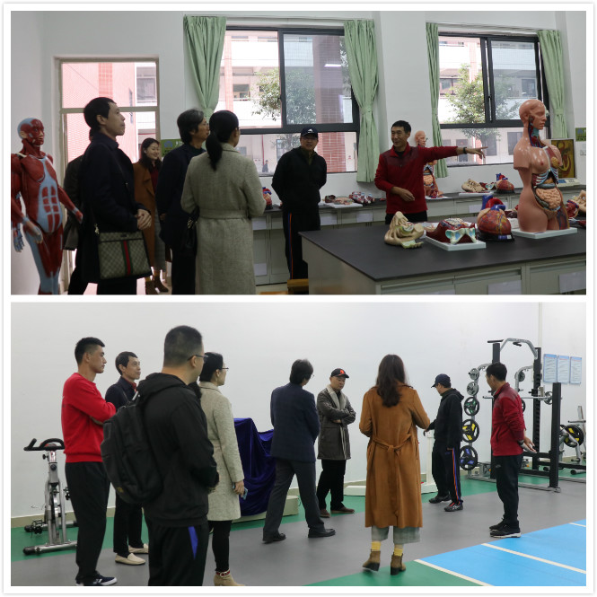 在韶关学院体育学院王桂忠院长的带领下,与会人员参观了体育馆、室外体育场、实验室、微格实训室、资料室等场地,仔细学习了解了学院在日常教学文件、教学文档、学生活动、党建材料等管理模式和宝贵经验。