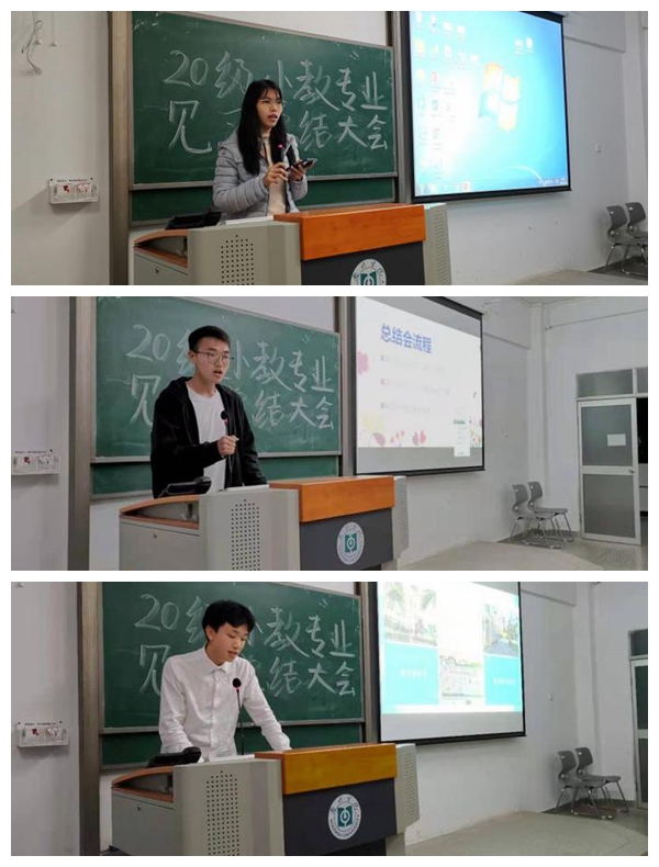 11月29日晚,2020级在旭日大楼405教室组织召开了见习总结会。总结会上,20级小学教育各班班长、小组代表上台分享了班上同学们在为期五天的见习活动之中的见闻与收获。