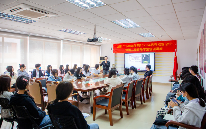 本网讯 12月9日下午,旭日广东服装学院在服装楼310会议室举办2020年优秀校友论坛暨第二期青马学堂培训讲座。旭日广东服装学院95级优秀校友陈毅斌,应邀作了主题为“疫情中大学生如何正确健康生活与学习”的专题讲座。学院党总支书记曾裕林、袁赛南老师、叶新豪老师以及第二期“青马学堂”全体学员参加了聆听了此次讲座。